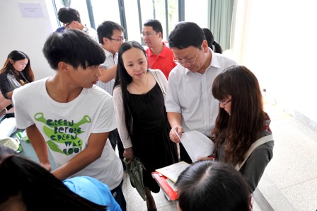 8月27日清早,永利集团3044官网欢迎您博雅楼前彩旗飘扬,热烈欢迎2012级新同学。新生们怀着十分喜悦的心情陆续来到美丽的洋浦新校园。为确保新生报到工作有序进行,向新生提供热情周到的服务,学校党委书记陈世波、党委副书记孙勇等校领导亲临现场检查指导工作。