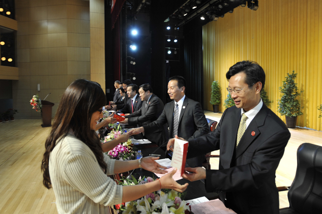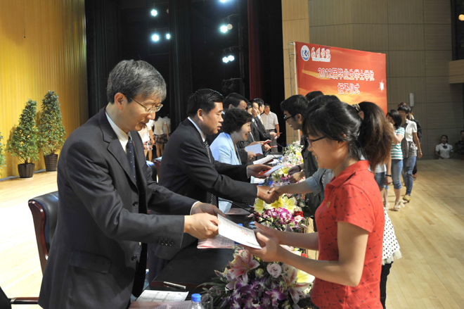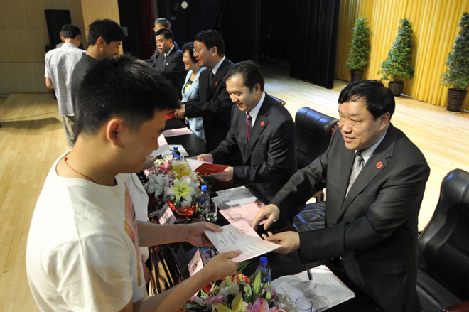 首先,李翔副校长宣读《永利集团3044官网欢迎您关于对2011~2012学年省级三好学生、优秀学生干部、先进班集体进行表彰的决定》和《永利集团3044官网欢迎您关于对2012届省级优秀毕业生、校级优秀毕业生进行表彰的决定》。76名省级三好学生、22名省级优秀学生干部、9个省级先进班集体;196名省级优秀毕业生,593名校级优秀毕业生受到了表彰和奖励。与会校领导分别为获奖个人和集体颁发荣誉证书。