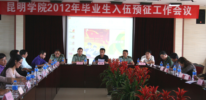 6月4日,永利官网在办公楼502会议室召开“2012年毕业生入伍预征工作会议”。副校长李翔,省军区征兵办王参谋和官渡区武装部领导出席会议。学校招生就业处、相关职能部门负责人和各教学院(系)党总支书记、副书记及就业创业指导中心全体工作人员参加了会议。招就处吴晓柏副处长主持会议。