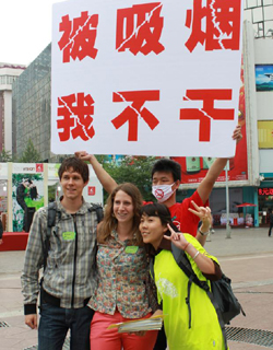 5月31日是第25个世界无烟日,本届无烟日活动主题为“被吸烟,我不干”,由盖茨基金会发起,云南省卫生厅、云南省卫生系统控烟领导小组办公室主办。美术与艺术设计学院受云南省卫生厅委托,团总支组织了60名志愿者参与此次活动。