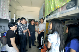 会后,检查组在张寿国副校长、董建华副校长、保卫处、后勤集团、基建处部门领导的陪同下,先后深入到教学楼、学生宿舍、食堂、图书馆消防控制室就永利官网消防安全管理工作进行实地检查。在学生宿舍,检查组随机访谈学生,了解学生掌握消防安全常识的情况,对学校的消防安全管理工作进行深入细致的检查。