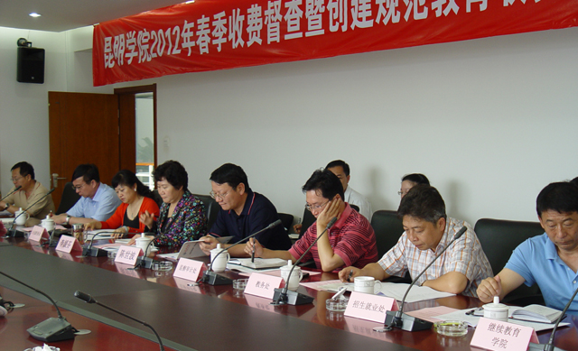 5月22日,由省教育厅、省发改委、省新闻出版局有关领导组成的2012年省七厅局春季教育收费督查及 “规范教育收费示范高校”考评组对永利官网2012年春季教育收费及创建“规范教育收费示范高校”工作进行了督查和考评验收,校长陈世波、校党委副书记李媛芬及学校创建“规范教育收费示范高校”工作领导小组成员单位负责人参加了汇报会,汇报会由学校监察审计处处长陈开祥主持。