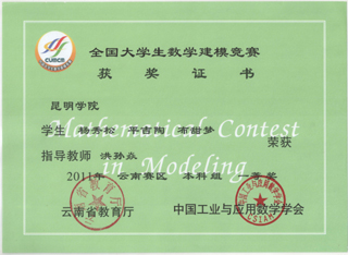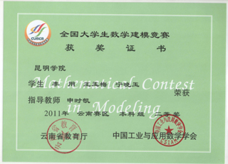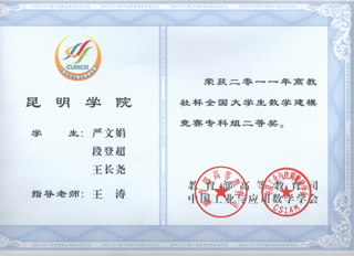 近日,2011年“高教社”杯全国大学生数学建模竞赛组委会公布了竞赛的获奖名次。永利官网信息技术学院学生取得国家二等奖、云南赛区一等奖和二等奖各1项的优异成绩
