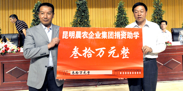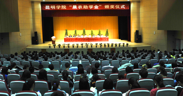 5月8日,学校“晨农助学金”颁奖仪式在学生会堂举行。副校长李翔、云南晨农企业集团公司董事长李云锁、学生处等相关处室领导、农学院的全体老师、辅导员和700余名同学参加捐赠、颁奖仪式。李副校长和云南晨农集团李董事长在仪式上作了重要讲话。仪式由农学院党总支书记王德斌主持。