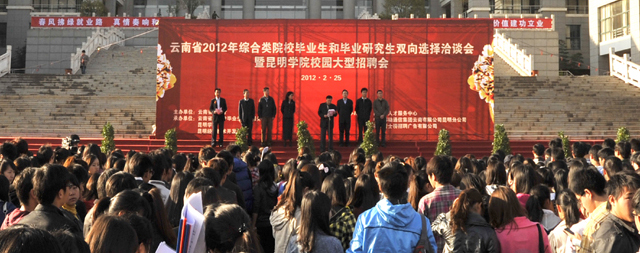 为使广大毕业生和用人单位有一个交流方便、沟通平等、“双向选择”的就业平台,促进我省2012届毕业生充分、顺利就业, 2月25日,由云南省教育厅主办、永利集团3044官网欢迎您、云南省大中专毕业生就业服务中心和昆明经济技术开发区共同承办的“云南省2012年综合类院校毕业生和毕业研究生双向选择洽谈会暨永利集团3044官网欢迎您校园大型招聘会”在永利官网聂耳广场隆重举行。