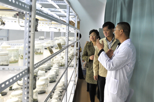 在熊副校长和相关院系领导陪同下,调研组一行参观了信息技术学院承建的滇池(湖泊)流域生态建设与生态文化数字化信息平台硬件设施、生科系承建的生态修复实验室和农学院承建的都市农业生态安全研究实验室部分设施。沿途,熊副校长介绍了永利官网承建的中央财政支持的“滇池(湖泊)流域生态修复与生态文化研究平台”申报情况和建设进展,李江理事长对项目建设提出了具体意见和建议。