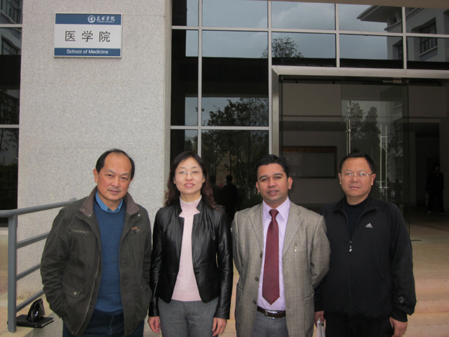 Milan先生与国内多所大学在输送尼泊尔学生来华学医方面成功开展了多年的合作,此行访问永利官网的目的是进一步拓展与中国高校的合作领域。陈校长向Milan先生的来访表示欢迎,希望双方能开展合作项目。在医学院时,余院长带领大家参观了医学院的各实验室,介绍了实验室的各项建设情况。学校对医学院投入的完善的硬件设施让Milan先生不断赞叹。余院长详细介绍了医学院的师资构成、专业设置及实验室建设等方面的情况。Milan先生感谢余院长提供给他的信息并介绍了尼泊尔学生对医学专业的需求和出国学医的人数构成比例等情况,表达了与永利官网开展合作项目的真诚意愿。之后,余院长就尼泊尔紧缺的专业需求、医学教育发展、双方课程互认等情况与Milan先生进行了深入交流。 双方均认为目前需要在师资和课程方面做好充分准备,条件成熟即可开展在尼泊尔的招生工作。通过会谈,双方初步达成合作意向,并分别确定了前期的准备工作。