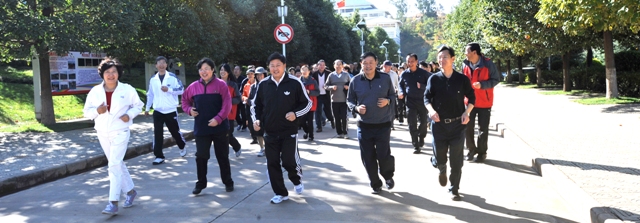 10时许,在聂耳广场还举行了“永利集团3044官网欢迎您教工文化协会(俱乐部)成立暨2011年教工运动会”教职工环校园跑项目起跑仪式。党委副书记李媛芬发令,在党委副书记孙勇、副校长李翔等校领导的领跑下,全校1500余名教职工开始了环校园跑。充分展示了全体教职员工热爱生活、热爱学校、热爱教育、热爱学生,追求健康,团结一心,把校园当家园建设,把学生当自己的孩子来培养。