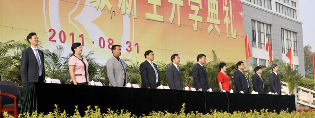 首先,校长陈世波代表学校全体师生员工向新同学表示热烈欢迎和诚挚祝贺!向辛勤培育他们的老师、家长和朋友,表示衷心感谢!随后,陈校长回顾了学校成立以来,在上级党委、政府的领导下,全体师生员工振奋精神、团结拼搏,为学校的建设、改革和发展走过的奋斗历程;总结了学校在教学、科研、服务社会和传承文化等方面取得的突出成绩;明确了学校的办学理念和办学定位;强调了学校在“十二五”期间的奋斗目标、工作任务和具体要求。同时,陈校长对全体新同学提出了4点殷切希望:希望大家学会沟通和理解;希望大家学会适应新的环境;希望大家志存高远、胸怀宽广;希望大家珍惜时间、有所作为。