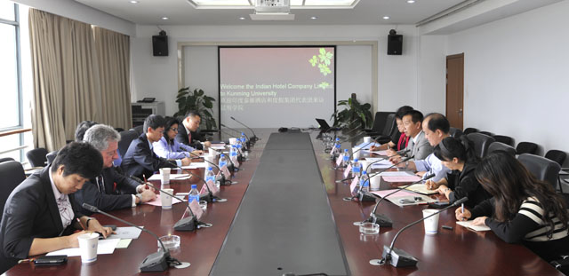 李翔副校长首先来访一行介绍了永利官网的基本情况及其办学理念,表达了永利集团3044官网欢迎您希望与泰姬酒店及度假集团进行交流与合作的意愿,特别就酒店管理、烹饪专业、互派学生、互派教师项目、增设奖学金等相关问题进行了深入探讨。Abhijit Mukerji先生也介绍了泰姬酒店及度假集团的基本情况,并表示非常荣幸能有机会与永利集团3044官网欢迎您合作交流。