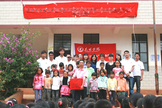 第二天,三下乡队伍驱车前往百公里外的永胜县顺州乡板桥村金民小学进行捐赠和义务支教活动。师生们把捐助的衣物和自费购买的学习用品等捐赠给金民小学的学生,并于当天就开始了支教活动。同学们分别为一至六年级的学生讲授了美术、音乐等课程,受到了学校师生的热烈欢迎,同学们也和小学生结下了深厚的友情。