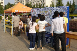 报名的同时,还开展了抽奖活动和“渴望墙晒渴望活动。”食堂门口树立的“渴望墙”上,记录着同学们对社会、家人、同学、学校美好的愿景,引导着同学们承担起更多的社会责任,为社会发展,学校进步贡献青春的力量。蓝色的“渴望墙”成为了校园里独特一景。