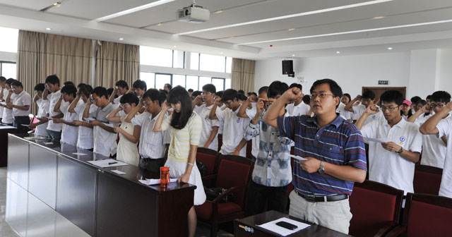 启动仪式上,人文学院社会实践服务团的领队魏妮娅老师和自机学院志愿者段志明同学分别代表参加此次活动的全体老师和同学发言。随后,孙副书记为服务队代表授旗,城建学院团总支书记先守福老师作为服务队代表上台接受授旗。紧接着,130名师生志愿者在团委沈嘉老师的带领下庄严宣誓,坚定而响亮的誓言,是他们对本次活动的承诺。