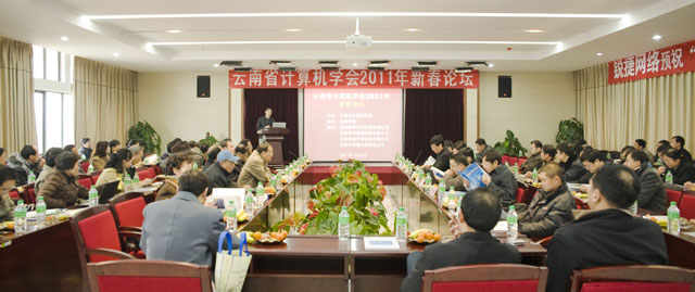 | 1月15日下午,云南省计算机学会2011年新春论坛在我院隆重召开。论坛由云南省计算机学会主办,永利集团3044官网欢迎您承办,昆明雷神科技发展有限公司、福建星网锐捷网络有限公司、北京博创兴业科技有限公司及昆明时育物科技有限公司协办。论坛由云南省计算机学会第七届理事会秘书长、云南大学信息学院副院长张学杰教授主持。我院副院长罗明东教授、云南省计算机学会全体理事、我院计算机与网络技术系全体领导、现代教育技术中心领导及特邀嘉宾共100名代表出席了此次论坛。