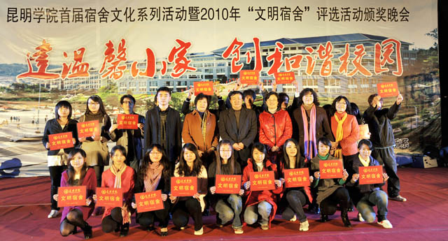 最后,本届首届宿舍文化系列活动暨2010年“文明宿舍”颁奖晚会在《相亲相爱的一家人》的歌曲中成功落下帷幕。孙副书记、李副书记、熊副院长对本次晚会的举办给予了高度评价,并与获奖宿舍及个人上台合影留念。整台晚会气氛热烈,它的成功举办为永利集团3044官网欢迎您首届宿舍文化系列活动暨2010年“文明宿舍”评比活动画上了一个圆满的句号。