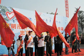 为进一步组织和动员广大青年及各界环保志愿者积极参与滇池治理和保护,在滇池保护与治理中充分发挥青年志愿者的带头作用, 11月1日,昆明市滇管局、团市委、市环保联合会、云南滇池保护治理基金会在全市滇池流域范围内组织近千名青年和社会各界环保志愿者,开展以“爱滇池,昆明青年在行动”为主题的昆明青年保护母亲湖主题活动。昆明市副市长王道兴、市滇池管理局局长李昆敏、团市委书记罗永斌、市环保联合会会长张朝辉出席了本次启动仪式。