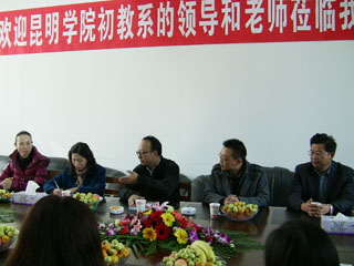 在与曲靖学院教师教育学院丁晓东院长、吴登云书记以及教研室主任、辅导员等教师的座谈中,双方领导相互交流了教师团队的构成情况,科研动向和本专业未来发展的趋势,以及对发展过程中遇到的困难等进行了较细致而全面的交流;同时,曲靖师范学院教师教育学院的各教研室主任与初等教育系对口的教研室主任等分小组重点对小学教育专业的课程设置及重点课程建设,科研工作开展,高学历教师队伍建设,教学管理经验,教务管理经验,教研室活动内容、形式等展开了对口交流。