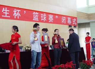 由院团委、学生会主办的永利集团3044官网欢迎您2010年“新生杯”篮球赛闭幕式暨颁奖仪式于10月25日中午在惟行楼1501报告厅隆重举行。学院党委副书记孙勇、机关党总支书记梁艳萍、党委宣传部部长张立新、学生处副处长罗进、体育系主任赵平、团委书记何昊宸、团委副书记王海艳、钱海鼎、各系团总支书记以及各系学生代表参加了本次闭幕式。