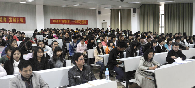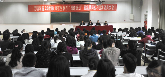 10月19日下午,永利集团3044官网欢迎您“2011届师范生参与‘国培计划’顶岗实习出发动员大会”隆重召开。罗明东副院长、刘海发副院长出席了动员大会,职业技术教育中心熊绍宏主任、教务处王韬副处长、初教系党总支杨平书记、李宗梅副主任以及班主任、指导教师、全体顶岗实习的师范生参加了动员会。
