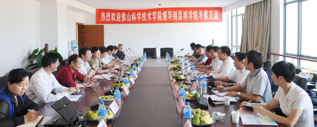 在陈世波院长、熊晶副院长等领导陪同下,佛山科学技术学院考察团一行首先参观了学院新校园。接着举行了座谈交流。座谈会由熊晶副院长主持。