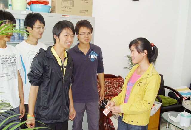九月初,化科系陈国彪等六位同学在新校园食堂用餐后,在地上拾到现金1000元。为了尽快找到失主,几位同学马上报告系主任和校保卫处。经过校保卫处多方查找,终于找到并确定了失主。原来,社会科学与人力资源系2010级劳动与社会保障专业新生张客华同学在食堂用餐时,不慎丢失现金。张客华同学来自偏远山村,家境困难,新生开学的费用都是向亲戚朋友借来的,这笔钱对她来说不是小数目,正当她为生活费发愁时,校保卫处和她取得了联系,经过核实和等待,最终确认她是该笔钱的失主,并将现金交还给她。