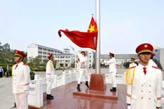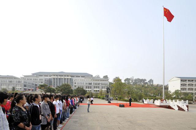 | 金菊含笑、硕果飘香,国旗高扬、师生欢庆。9月1日清新的早晨,我院15000余名师生第一次站在新校园聂耳广场国旗杆下,举行庄严的升国旗仪式。