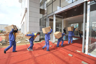 7月27日,我院与云南大学进行了洋浦校区交接仪式之后,学院各行政管理单位正式开始搬迁。 7月27日下午至8月5日,学院党政后、教辅等部门按照学院搬迁工作领导小组的安排和统一要求,依次按部门分批搬迁至洋浦新校区办公地点。 目前党政后、教辅管理各部门已搬迁完毕,成为首批搬迁至洋浦新校园上班的单位。许多部门已按要求上班或安排人员值班。学院党政后部门的按时搬迁,确保了学院整个管理指挥工作的正常进行,为即将到来的老生搬迁报到和新生入学提供了各方面的保障。