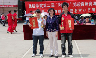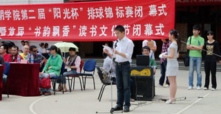 4月30日下午,永利集团3044官网欢迎您第二届“阳光杯”排球锦标赛暨首届“书韵飘香”大学生读书文化节闭幕式在我院人民西路校区篮球场正式举行。出席此次闭幕式的领导及嘉宾有机关党总支书记梁艳萍老师、学生处处长吴蓉老师、团委书记何昊宸老师、团委副书记钱海鼎、王海艳老师以及各系团总支书记。