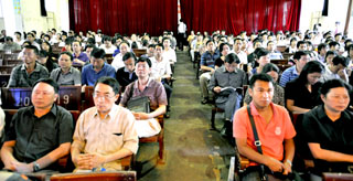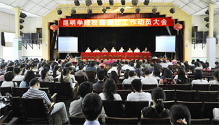 5月7日下午,学院为按计划推进校园搬迁工作,确保各项搬迁任务顺利完成,在昆师路校区大礼堂召开了“校园搬迁工作动员大会”。学院党委书记梁晓谷、党委副书记院长陈世波、党委副书记孙勇、副院长张寿国、熊晶、罗明东、刘海发、董建华出席了大会。学院全体中层干部(含调研员、副调研员)、全体辅导员和团总支书记、各单位教师代表、民主党派代表、离退休职工代表、各系学生代表参加了会议。
