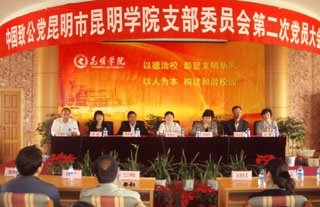 4月30日,致公党永利集团3044官网欢迎您支部第二次党员大会在人民西校区3号楼多功能厅召开。中共昆明市委统战部副部长贾天鹏,昆明市政协副主席、致公党昆明市委主委林怡平,副主委黄秋苹,学院党委副书记李媛芬,院党委统战部部长张云权等领导及我院兄弟党派负责人应邀到会。
