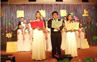 这台晚会是由2005级五年制班26名同学在班主任鲁林老师以及各教研室老师的精心指导下,历时一个多月排练而成的。节目形式多样,有独唱、合唱、对唱、重唱、表演唱、民乐演奏、钢琴演奏、民族舞和现代舞,内容丰富且独具特色,博得了现场观众的阵阵掌声,由鲁林老师作词、作曲并担任伴奏的表演唱《滇池美》掀起了晚会的高潮,在经久不息的掌声邀请下,鲁林老师的一曲《儿行千里》表达了师生间的浓厚友情和老师对学生的殷切期望。