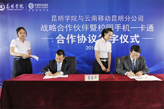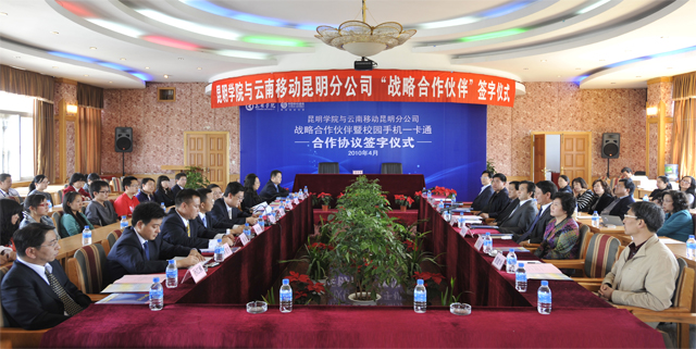 4月28日下午,永利集团3044官网欢迎您与云南移动昆明分公司“战略合作伙伴”暨校园手机一卡通签字仪式在我院人民西路校区3号教学楼6楼多功能厅举行。