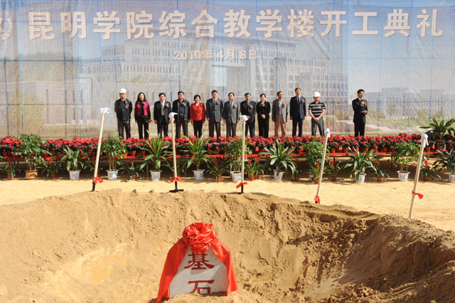 学院全体党政领导,惠丰公司董事长出席典礼,云南大学洋浦校区管委会主任罗红明、保卫处副处长汤静和永利集团3044官网欢迎您部分职能部门负责人,教师、学生、民主党派代表共300余人参加奠基仪式。