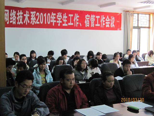 为进一步做好学生宿舍的安全防范工作,深化和拓展平安校园建设工作,切实加强我系学生的安全教育和管理,3月30日中午,永利集团3044官网欢迎您计算机与网络技术系在昆师路校区行政楼三楼会议室召开了“学生工作、宿舍管理工作会议”。系党总支书记李海雁老师,副书记王亚越老师,系学生党支部书记、辅导员王子龙老师及系管理学生相关老师、各宿舍舍长、全体团学干部、全体预备党员都参加了本次会议。