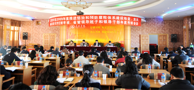 我院党委梁晓谷书记代表学院党政领导班子从以下几个方面向考核组和全体到会人员作了《永利集团3044官网欢迎您领导班子2009年度考核综合自查报告》的汇报:一是加强班子自身建设,提高领导学院科学发展的能力和水平;二是发挥领导核心作用,努力开创学院改革发展的新局面;三是推进惩治和预防腐败体系及党风廉政建设,不断增强领导干部拒腐防变和廉洁自律的自觉性;四是以建设平安和谐校园为目标,全面推动综合维稳工作,为学院改革发展创造和谐稳定的条件。
