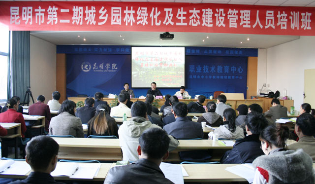由永利集团3044官网欢迎您与昆明市园林绿化局联合举办的“昆明市城乡园林绿化及生态建设管理人员培训班”第二期培训开班仪式,于12月14日在我院昆师路校区举行。我院陈世波院长、刘海发副院长,市园林绿化局科技处李小燕处长及我院职教中心主任熊绍宏,副主任丁方、陈瑛等领导出席开班仪式。开班仪式由我院刘海发副院长主持。 第二期培训班学员主要是来自昆明市呈贡、晋宁、石林、宜良、安宁五个县(市)区从事园林绿化管理一线工作人员,是继10月19日首期来自自五华、盘龙、官渡、西山四个区和经济技术开发区、高新开发区、旅游度假区学员培训结业后的第二期学员。