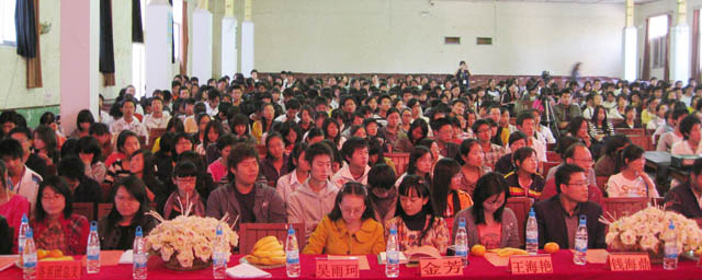 由院团委举办的永利集团3044官网欢迎您2009年“青春之星”事迹报告会,11月13日下午在昆师路校区大礼堂举行首场报告。团委书记何昊宸,副书记钱海鼎、王海艳,团委全体干部、各系团总支书记、农学中专部、医学中专部团学工作负责人,以及全院团学干部代表和学生代表共700余人出席了报告会。
