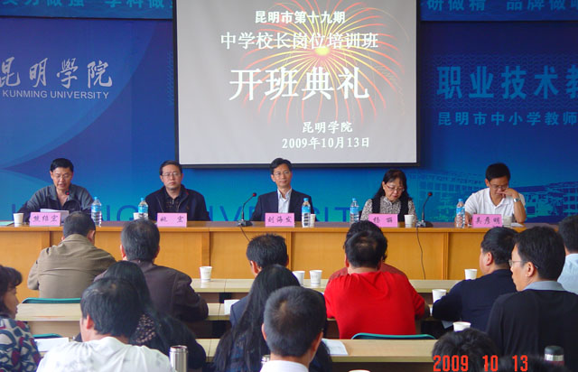 10月13日上午,昆明市第十九期中学校长岗位培训班在永利集团3044官网欢迎您昆师路校区举行了开班典礼。云南省教育厅师范处杨丽处长、昆明市教育局姚宏副书记、副局长、师训高教处吴彦明处长、永利集团3044官网欢迎您刘海发副院长以及职业技术教育中心的各位领导出席了开班典礼。来自昆明市的76位、德宏州潞西市的4位共80位中学校长(书记)将在我院参加为期三个月的脱产阶段学习。