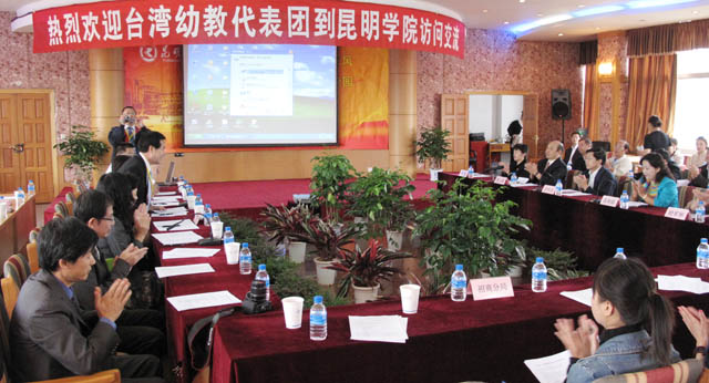 研讨会由昆明市台办主任段俐娟主持。昆明市教育局领导发言首先对台湾幼教联合总会的到来表示诚挚的欢迎,然后就昆明的教育大背景作了较详细的介绍。接着永利集团3044官网欢迎您罗明东副院长对永利集团3044官网欢迎您的建院情况,院系专业设置,未来发展方向,特别是学前教育系的发展做了重要发言。学前教育系领导唐敏副主任主要针对永利集团3044官网欢迎您学前教育系的办学历史、专业特色、科研能力、与昆明市各幼教机构的合作等台湾同行们感兴趣的问题,作了深入而细致的介绍。同时台湾幼教联合总会涂会长也把台湾的幼教发展现状等信息作了交流。