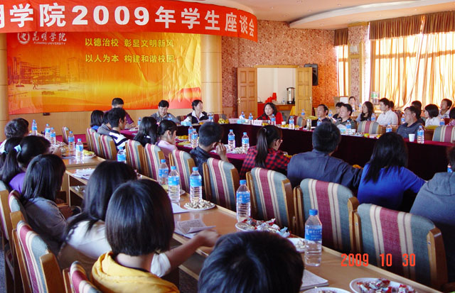 为期两天的永利集团3044官网欢迎您2009学年学生座谈会于10月29日、10月30日分别在龙泉路校区、新迎路校区、人民西路校区(含昆师路校区学生)、体院路校区举行。我院孙勇副书记、熊晶副院长,院办、学生处、教务处、团委、保卫处、后勤处等学生工作指导委员会相关成员单位领导、各校区综合办以及城建系、美艺系等系部的相关负责人分别出席在各校区举行的学生座谈会,听取并现场解答了部分同学提出的意见和建议。参加此次学生座谈会的各系学生代表共计130余人。