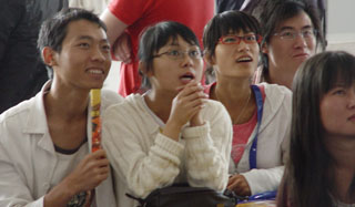 各校区学生们聚精会神、踊跃观看电视直播节目,现场气氛热烈,群情振奋,大家为祖国建设发展成就感到十分自豪,共同为祖国60华诞祝福,为祖国的繁荣富强喝彩!