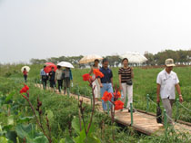 为了庆祝中华人民共和国成立60周年,激发民主党派成员热爱社会主义祖国的情感,感受家乡改革建设发展及滇池污染防治的新成就、新面貌,8月13日,九三学社永利集团3044官网欢迎您委员会利用暑期组织社员参观考察了位于西山区高海公路沿线的西华湿地公园。九三学社昆明市委郝昆宁副主委、学院统战部张云权部长及九三市委马玉宝同志应邀参加了参观考察活动。 本次活动经我院滇池(湖泊)污染防治合作研究中心办公室副主任钱春萍(九三学社永利集团3044官网欢迎您委员会副主委)的联系,西山区滇池管理局的工作人员做了认真的接待,引导大家沿着木质的亲水栈道向湿地深处参观,并一路介绍了西山区滇池治理和西华湿地建设情况。