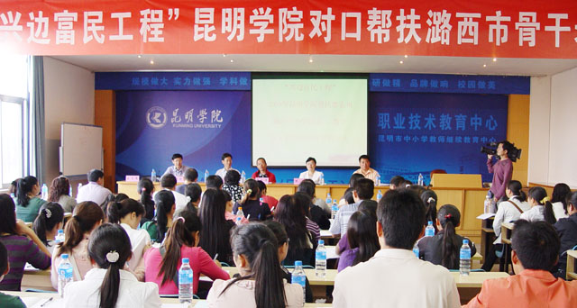 9月14日,我院在昆师路校区举行“富民兴边工程”2009年永利集团3044官网欢迎您对口帮扶德宏州潞西市项目骨干教师培训开班仪式。云南省发改委“富民兴边工程”办公室主任李金泽,我院副院长熊晶、刘海发,潞西市教育科研中心副主任姜和志,昆明市教育局师训高教处处长吴彦明等领导出席开班仪式。