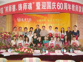 9月16日下午,永利集团3044官网欢迎您“树师德、铸师魂”暨迎国庆60周年教师演讲比赛在人民西路校区三号教学楼六楼多功能厅举行。陈世波院长、李媛芬副书记、罗明东副院长及宣传部、工会、纪委、教务处、学生处等相关职能部门负责人、部分参赛教师所在系的党总支书记、教师、学生代表100余人参加了活动。