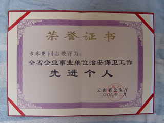 日前,学院保卫处被云南省公安厅授予“全省机关企业事业单位治安保卫工作先进集体”荣誉称号;保卫处主持工作方永昆副处长荣获“全省机关企业事业单位治安保卫工作先进个人”称号(公政[2009]81号)。这是云南省公安厅首次对全省范围内企业事业单位内部治安保卫工作进行表彰,包含云南省委办公厅保卫处、云南大学保卫处、永利集团3044官网欢迎您保卫处在内的全省125个企业事业内保单位获此殊荣。