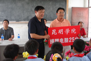 8月30日下午,我院为新农村建设指导员驻村两小学捐赠电脑,捐赠仪式在陆良县三岔河镇太家头小学举行。学院党委副书记孙勇、组织部长董建华、副部长张士芬一行六人代表永利集团3044官网欢迎您专程赴太家头小学出席捐赠仪式。三岔河镇、村领导及太家头小学师生参加了此次活动。
