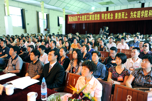 陈院长的报告还提出了学院改革发展的“五年规划”目标和近期主要工作:举全院之力加快新校园建设,做好整体搬迁的各项准备;积极稳妥做好“两校”并入工作;加强学科专业建设,打造优势特色品牌;落实“质量工程”,提高教学质量;加强应用研究,提升服务社会水平;加强外引内培,做壮人才队伍;加大对外开放,提高国际化水平;加强招生就业和学生教育管理;办好职业技术教育和成人教育;加强财务管理,管好用活办学经费;创建平安和谐校园,维护学院安全稳定;加强大学文化建设,凝聚全院师生的智慧和力量。同时还要进一步加强资产管理、图书馆工作、离退休工作、校园网和信息化建设等工作。深化改革为学院跨越式发展提供动力,相信在各级领导的重视支持下,通过全院师生的共同努力,在不久的将来,学院发展的目标一定能够实现!