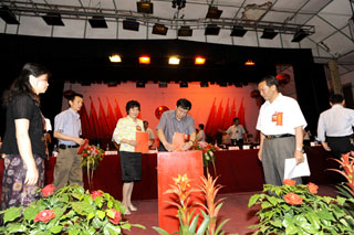 大会上代表投票选举 |
