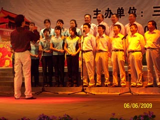 在三岔河政府关于举办“庆祝中华人民共和国成立60周年‘歌唱祖国,奉献教育’教师合唱比赛”文件精神的安排与要求下,全镇25所小学教师参加的合唱比赛于6月6日在陆良县滇剧团大礼堂隆重举行;由太家头小学16位教师组成的小合唱队,在王金强排练指挥下,演唱了《荷塘边的小学》(由王金强改编)和《在太行山上》两首音乐作品,赢得了观众与本次评委的认可,夺得了一等奖。王金强同志的言行和奉献不仅使他的个人才能得以很好的施展,还为永利集团3044官网欢迎您带来良好的声誉与影响,受到当地群众好评。