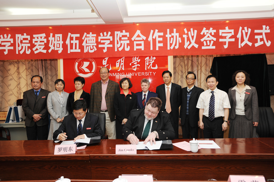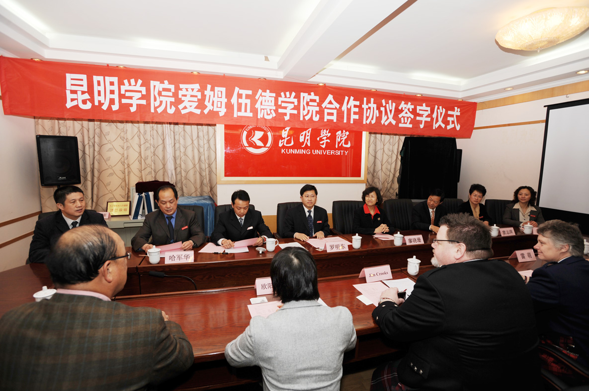 4月5日上午,英国苏格兰爱姆伍德学院与永利集团3044官网欢迎您高尔夫教育合作协议签字仪式在我院举行。昆明市副市长廖晓珊女士、永利集团3044官网欢迎您副院长罗明东教授博士、昆明市旅游局局长黄俊峰先生,苏格兰圣安德鲁斯爱姆伍德学院院长Jim Crooks先生、苏格兰圣安德鲁斯爱姆伍德学院国际交流中心主任Carol Borthwick女士、苏格兰——中国、亚太地区高尔夫教育合作项目总监欧阳艳凤女士、爱姆伍德中国办事处董事雷萌和我院旅游系、院办、对外交流合作处负责人参加了签字仪式。